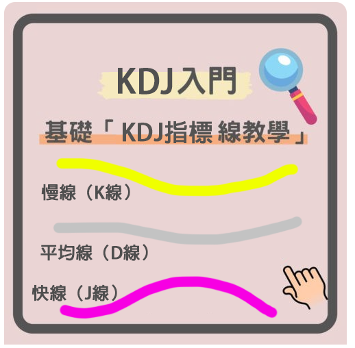 KDJ指標是一種相當新穎、實用的技術分析指標,投資人習慣稱他為隨機指標。指標根據統計學原理,取9個交易日(公認最佳為9日,投資人也可依據喜好設定)內商品的最高價、最低價、最後一個計算週期的收盤價,以這三個數據的比例關係計算出未成熟隨機值(RSV),採用K線、D線、J線三條線表達。